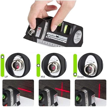 خط ليزر بثلاث وظائف: يعرض شعاع ضوء ليزر أحمر رأسيًا وأفقيًا ومتقاطعًا، وهو مثالي عند الحاجة إلى خط مستقيم أو قياسات دقيقة - ملاحظة: الليزر ليس ذاتي التسوية
